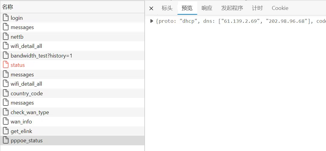 url是这样的:http://路由器IP/cgi-bin/luci/;stok=3064506d8615d0a05cad3356af54d898/api/xqnetwork/pppoe_status